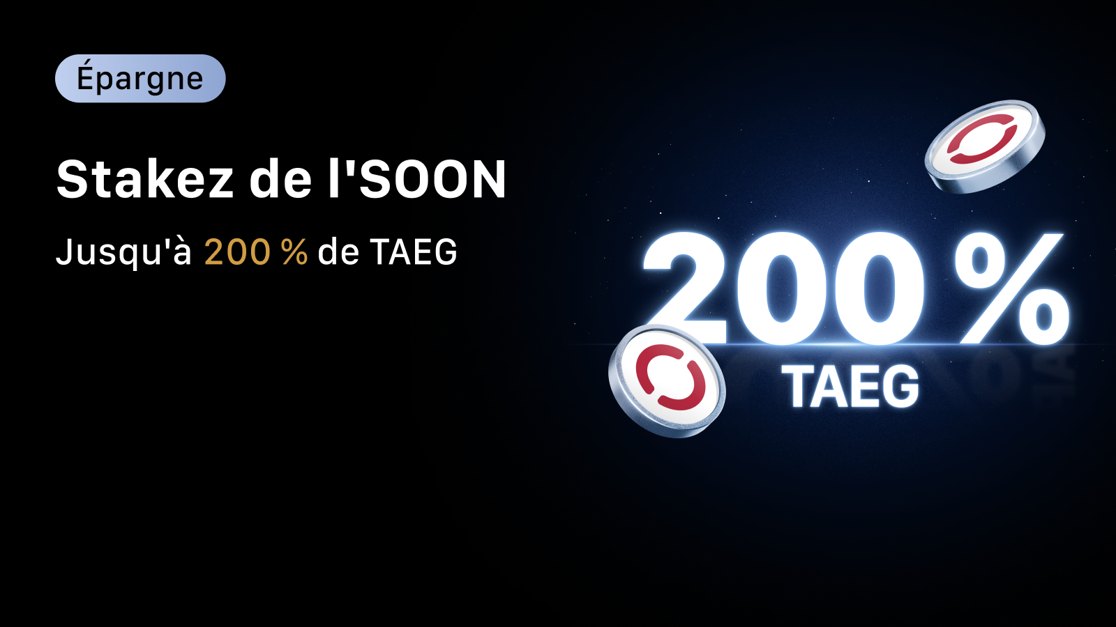 | Réservé aux nouveaux utilisateurs | 3 jours | 200 % | 350 SOON | 5000 SOON |