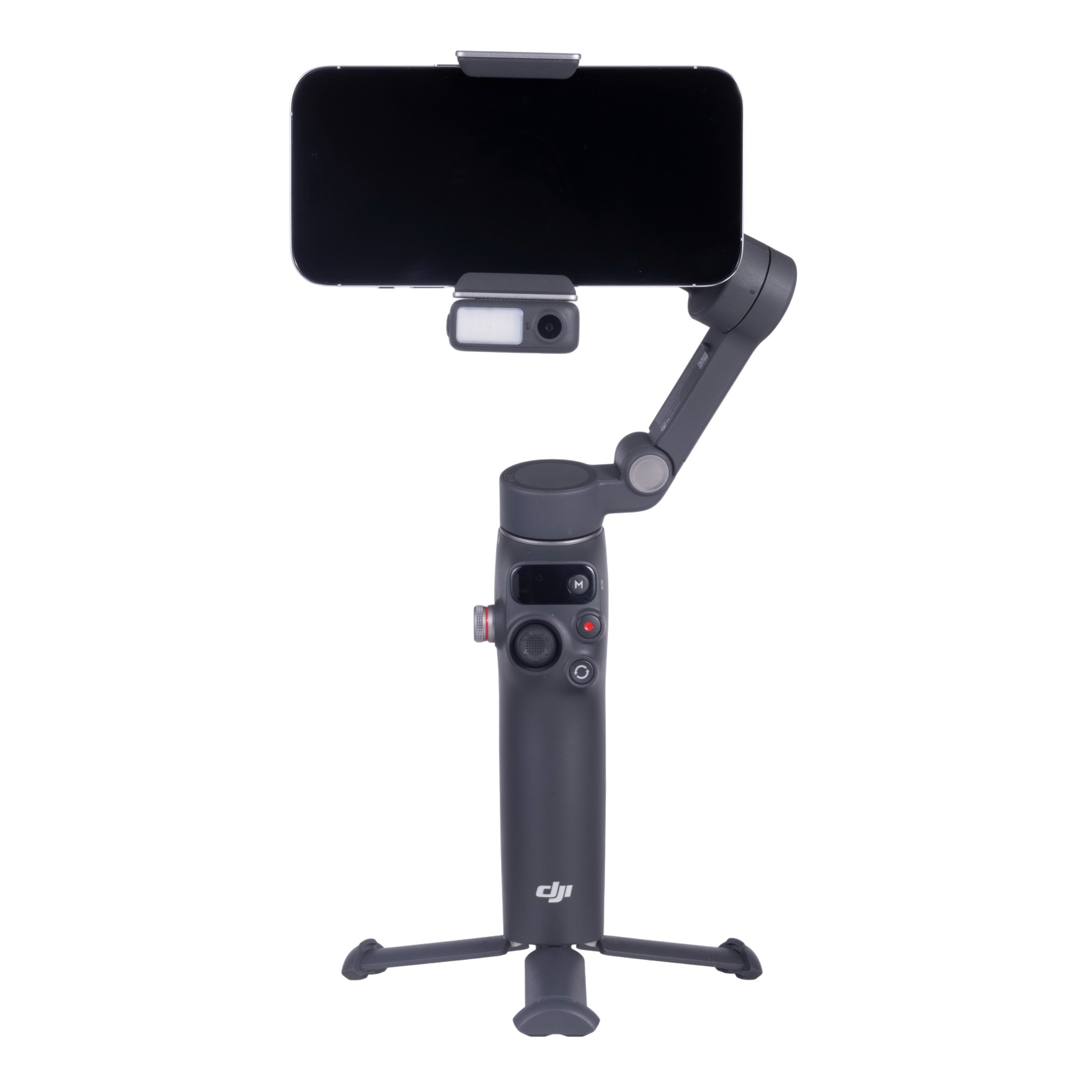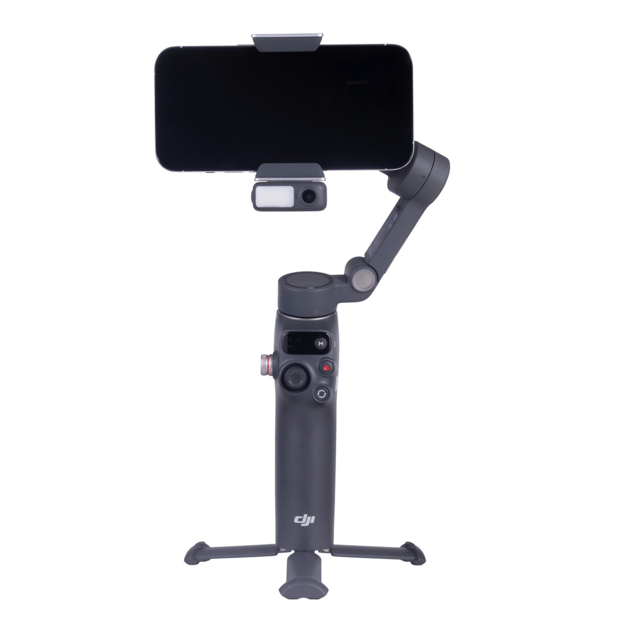 DJIの「Osmo Mobile 7P」は、多機能モジュールを搭載し、ネイティブトラッキングや音声、照明を統合したスマートフォン用ジンバルです。内蔵の延長ロッドと三脚により、ソロ撮影や収納時の利便性を向上。バッテリー駆動時間は10時間で、充電機能も備えています。歩行時も走行時もブレを抑えた滑らかな映像を実現しており、SNS投稿用の動画やVlog撮影を快適に行いたい人におすすめです。ブレの少なさの検証では、歩行時・走行時・腕を振った時・内カメラ使用時のいずれの動作でも、ブレを効果的に抑えた安定した映像が得られました。また、追従機能の検証では、近距離・遠距離ともに問題なく追従できました。追尾が外れるストレスをほとんど感じることなく撮影に集中できるでしょう。扱いやすさの検証では、持ち手にへこみが設けられており、ラバーやざらつきのある素材で構成されているため、握りやすく滑りにくい仕様でした。重さは369gとやや重いものの、バッテリーは10時間持続するため、長時間の撮影にも対応できます。さらに、専用ポーチが付属しており、畳んだ時の全長は188mmとコンパクトにまとまりました。カバンのメインポケットを占領せず、ペットボトル程度の感覚で持ち運べるサイズです。安定した映像品質と高い追従性能を求める人、長時間の撮影でも疲れにくい軽量設計を重視する人におすすめです。クリップの固定力が高く位置調整の手間を省けるため、撮影中の安定性を求める人にも適しています。外出先での撮影が多い人や、荷物をできるだけ軽くしたい人にとっても、コンパクトな収納性が魅力といえるでしょう。