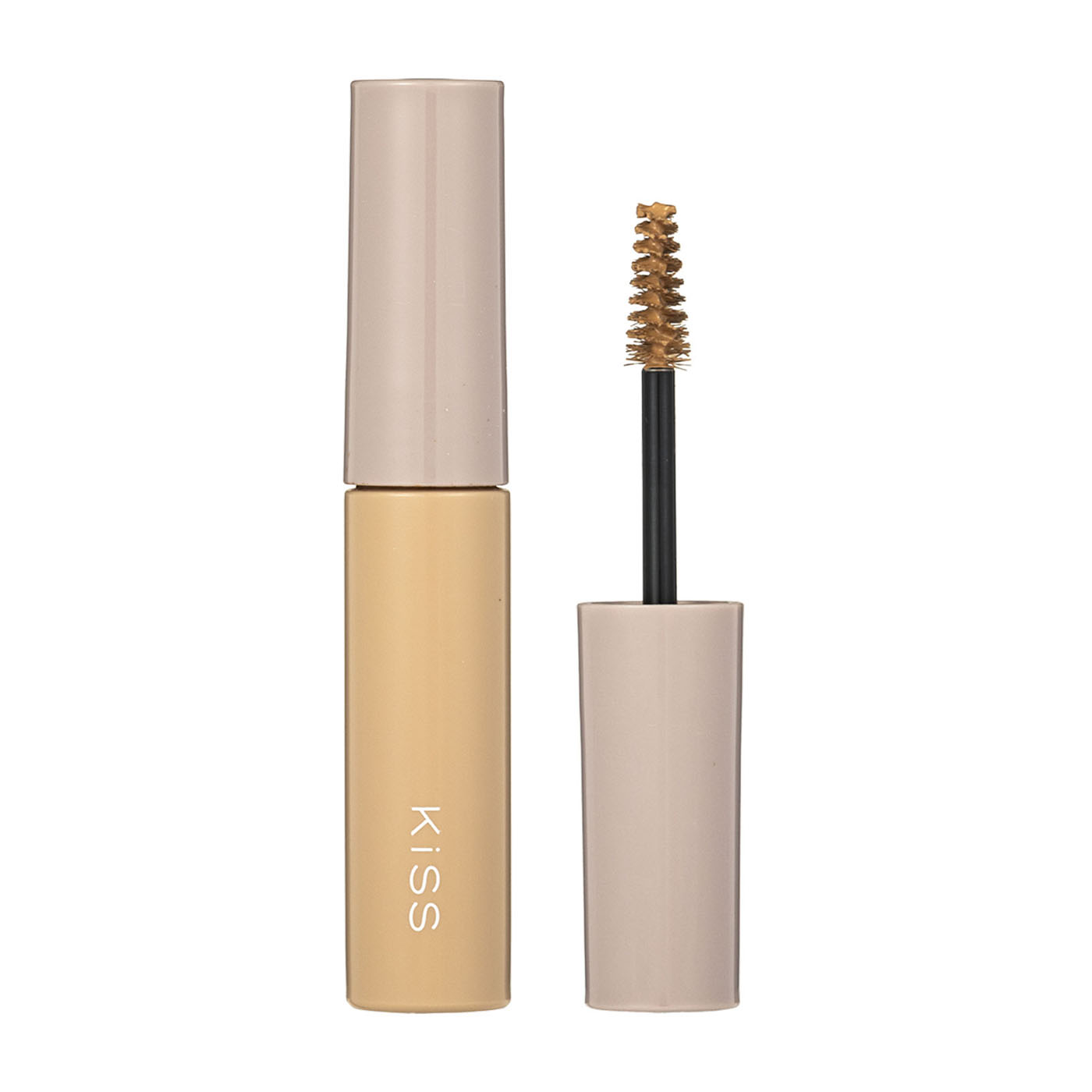 伊勢半のkiss「うす眉メーカー」は、自眉の色をしっかり隠してナチュラルな眉毛を演出したい人におすすめです。色づきがかなりよく、実際に使用したモニターからは「サッと塗るだけできれいに発色した」「自眉の黒色が透けなかった」という声が寄せられました。均一に色がつきやすい点もポイント。重すぎず軽すぎないテクスチャで、「根本から毛先まで均一につきやすく、毛同士が束にならなかった」という好意的なコメントが多数寄せられました。また、ブラシが円すい型で先端が細くなっており、眉毛が短い部分に塗っても地肌に色がつきにくい点でも評価を伸ばしています。落ちにくさも優秀で人工汗液や皮脂に見立てたラードを吹きかけても、全体の色をきれいにキープできました。全体的にコンパクトな形状なので、小回りが利きやすく、眉尻の細かい部分にも塗りやすいでしょう。一方、カラーバリエーションは2色とかなり少なめで、髪色や肌の色によっては使いづらいのが惜しいところです。カラーバリエーションは2色と限られていますが、サッと塗るだけで自眉の色を隠せる色づきのよさはかなり魅力的。明るい髪色に合わせて、眉色をしっかり明るくしたい人にはうってつけの商品ですよ。