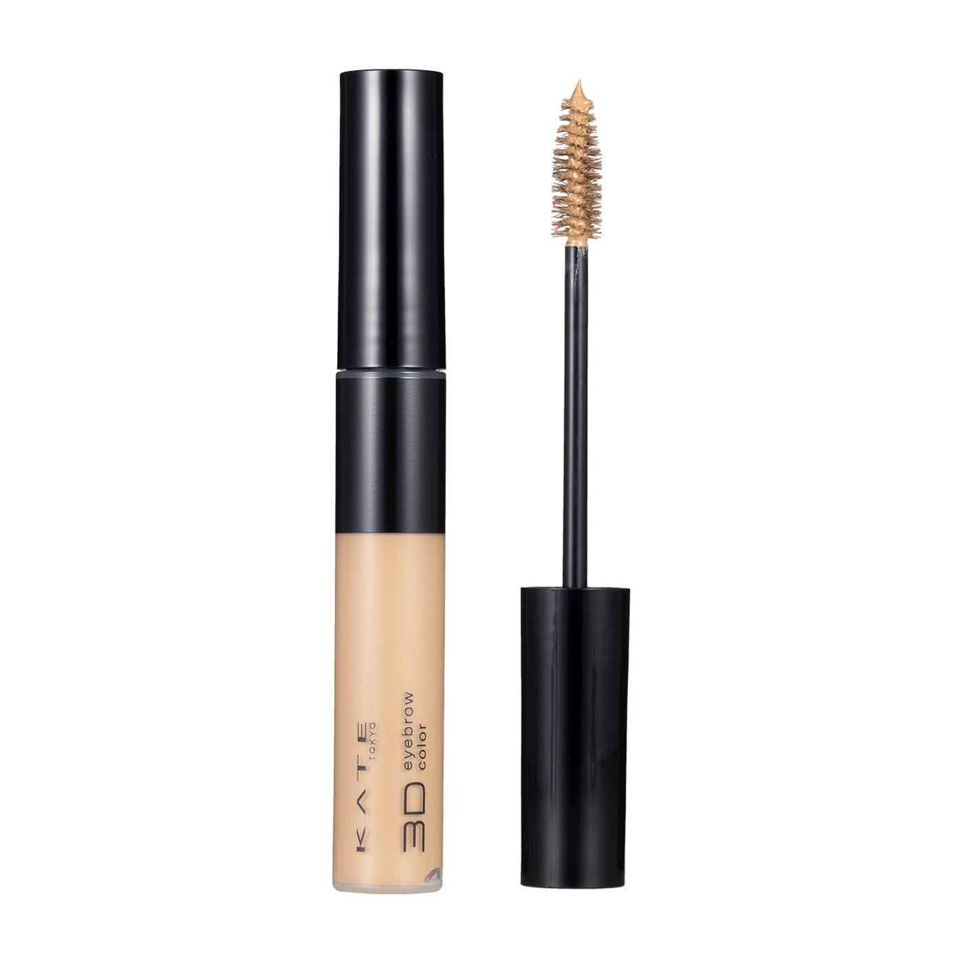 カネボウ化粧品のKATE「3DアイブロウカラーZ」は、眉マスカラを使い慣れない初心者でも自然に仕上げやすい商品。色展開は6色とまずまず豊富なので、多くの人は自分に合う色が見つけられそうです。商品を手に取ってみると、長さに余裕のある持ち手で握りやすい点は好印象。時間のない朝の準備時間に使っても、手から滑り落ちる心配が少ないでしょう。また、ブラシから持ち手までの長さが4.5cmとかなり余裕があり、地肌に液がつきにくかったのもうれしいポイントです。さらに、テクスチャが重すぎないためか毛同士がくっつきにくく、ふわっとした自然な眉毛に仕上げられました。「眉マスカラを塗っている感が強い仕上がりは避けたい」と思っている人にもぜひ一度使ってみてほしい眉マスカラです。なお色づきのよさの検証では高評価には届かなかったものの、自眉がかなり濃い目でなければある程度色づけやすいでしょう。ただし、落ちにくさの検証では皮脂に見立てたラードを加えても崩れにくかったものの、汗に見立てた人工汗液にはやや滲む結果に。汗をかきやすい季節はフェイスパウダーをしっかり重ねるのがよいでしょう。とはいえ、眉マスカラ初心者でも地肌を液で汚しにくく、自然に仕上げやすいのは魅力です。