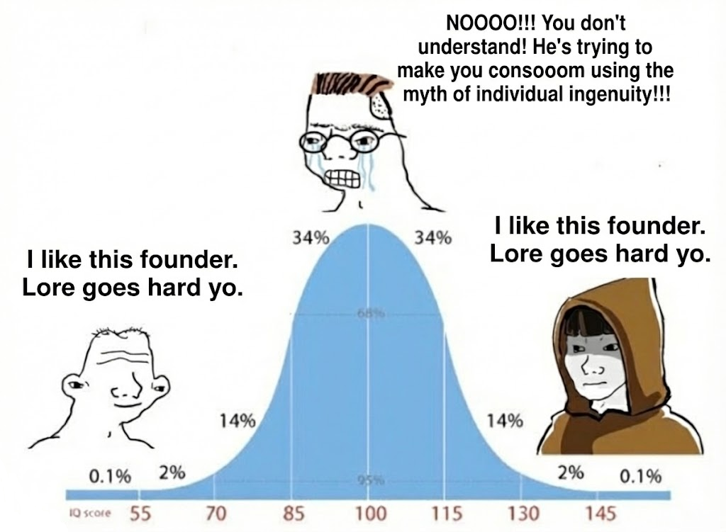 Make no mistake, this is not a substitute for authenticity. The founder myth (the form it often takes) is predicated on a crafted plot and message. You could even argue it grows to a parasocial relationship — I mean, just look at Elon Musk’s eager hordes of acolytes.