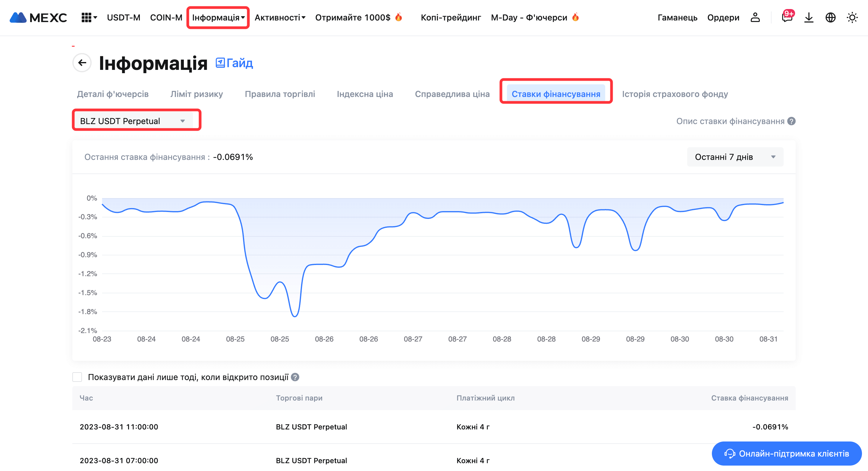 О 11:35, 31 серпня 2023 року (за Києвом), MEXC скоригує частоту розрахунків ставки фінансування для безстрокових ф'ючерсів BLZ USDT-M. Нова частота розрахунків тепер становить один раз на кожні 8 годин.
