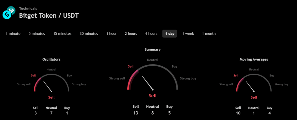 З показників на графіку вище ми можемо зробити наступні висновки щодо цінового імпульсу Bitget Token (BGB).
