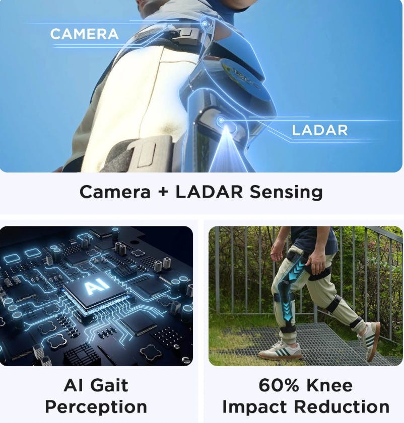 這款「IRMO M1」腿部強化外骨骼裝置,主打透過即時的視覺資訊來調節輔助程度,目的是減輕使用者在進行各種活動時膝蓋所承受的壓力。結合相機與雷射感應器,能夠即時分析前方約2.5公尺範圍內的地形。根據這些地形資料,裝置會自動調整提供的輔助力道,最高可將膝蓋的負擔減輕達6成,並減少約45%的疲勞感。